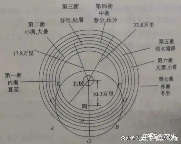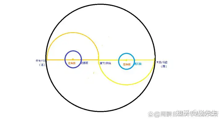 Hoàng Đạo (tại bất kỳ điểm nào) đều quay quanh Sao Bắc Cực, Sao Bắc Cực không phải là tâm của Hoàng Đạo mà là tâm quay. Khi chọn bất kỳ chòm sao/tiết khí nào trên Hoàng Đạo, cuối cùng sẽ tạo thành một vài vòng tròn đồng tâm với đường kính khác nhau.